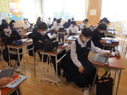 意見を交流させよう 2−D社会 公開日 2022/10/21 更新日 2022/10/21 芝園の一日 10月21日(金) 1限 2−Dの社会の授業風景です。植民地について学習しています。クロームブックを活用してグループで話し合い、意見を交流させて発表しました。