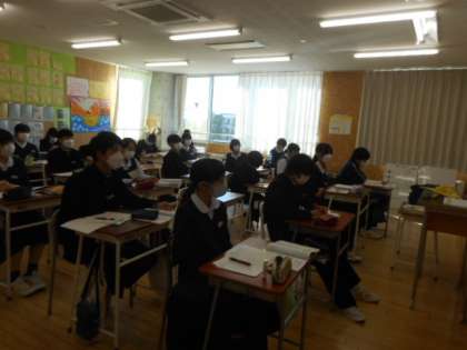 外角の和を求めよう 2−C数学 公開日 2022/10/26 更新日 2022/10/26 芝園の一日 10月26日(水) 1限 2−Cの数学の授業風景です。これまで学習したことをもとに、多角形の内角や外角の和について、求め方を考えました。