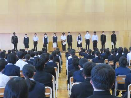 本日、受賞報告会を行いました。スポーツ、文化など様々な分野で多くの生徒が活躍し、表彰されました。