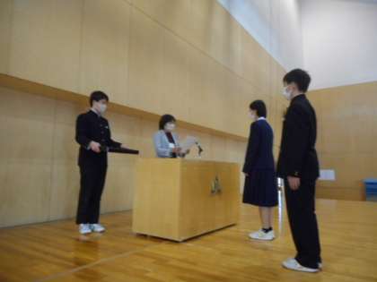 生徒会役員任命式を行いました。先日の生徒会役員選挙を経て、本日校長先生から令和4年度後期、令和5年度前期の生徒会長・副会長が任命されました。また、新生徒会長が、書記、会計、各専委員長を委嘱しました。3年生から1,2年生へとバトンが引き継がれました。2年生を中心に生徒会活動を盛り上げていってください!