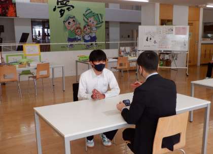 3−Dの英語の授業風景です。ALTの先生と英語でディスカッションをしています。身振り手振りで、自分の伝えたいことを伝えている姿は「さすが!3年生!」です