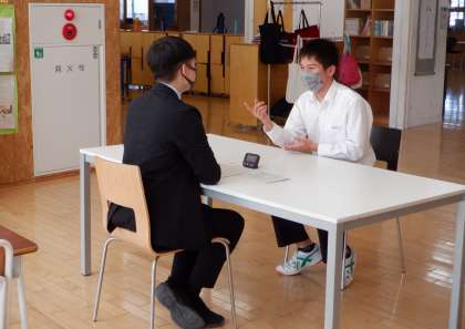 3−Dの英語の授業風景です。ALTの先生と英語でディスカッションをしています。身振り手振りで、自分の伝えたいことを伝えている姿は「さすが!3年生!」です