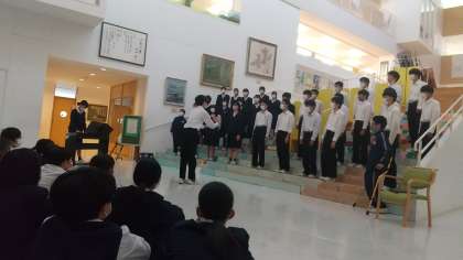 昨日の放課後、1年C組は、3年C組の合唱を見学しました。先輩の堂々とした合唱を聞き、その後の合唱練習に真剣に取り組みました。本番までもう少し。頑張ろう1年生!
