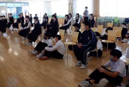 先輩からの激励。そして迫力ある先輩の合唱を聴き、1年生はよりよい合唱を目指して気持ちも新たにしていました。