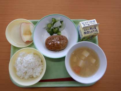 ・豆腐のみそ汁 ・きざみあえ ・りんご です。