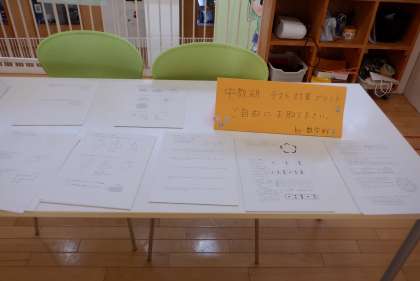 ※画像は、1年生のフロアに置かれていた数学の学習プリントです。分かるまでとことん勉強しようね!