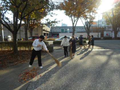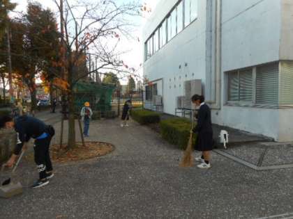 けやき通りの落ち葉掃きを始めました。今日は、2年A組が担当しました。登校した生徒から進んで、ほうきをもって、地域の環境美化に取り組みました。寒さに負けず黙々と取り組む姿勢がステキです。