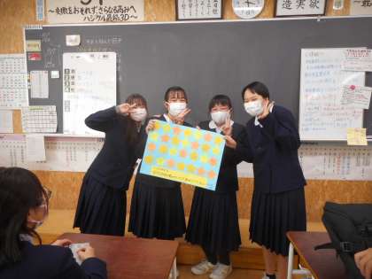 合唱コンクールの練習の様子を見せていただいたお礼を2年生が3年生に伝えている様子です。先輩の姿を見て、たくさん学びましたね!来年以降も活かしてがんばっていきましょう。