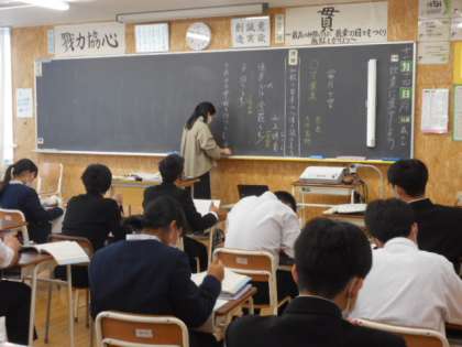 3−Aの国語の授業風景です。万葉集にある和歌を読み、当時の人々の思いについて考えました。奈良時代に読まれた和歌には現代にも通じる部分があるようですね。