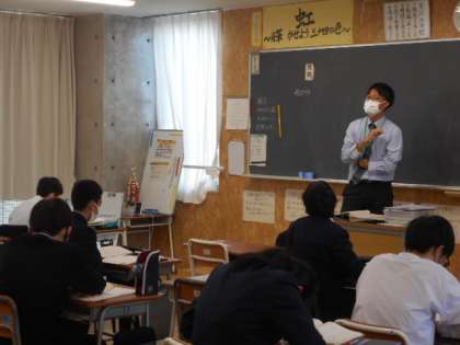 2−Aの国語の授業風景です。那須与一がどのような覚悟で義経の命令を受け、矢を射たのか、与一の心情を考えました。