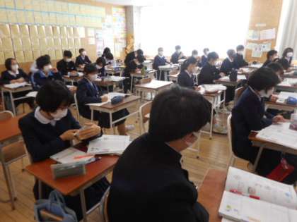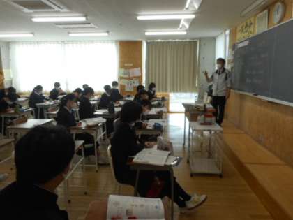 2−Cの理科の授業風景です。大気圧について学習しました。スナック菓子の袋が高い山の頂上では、どのように変化するかなどを例に、大気圧について学びました。