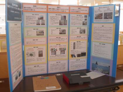 文化活動展示週間 公開日 2022/11/19 更新日 2022/11/19 芝園の一日 大階段上には、理科の自由研究を展示しています。充実した内容になっていました。 上・中 理科自由研究の成果 下 美術部作品