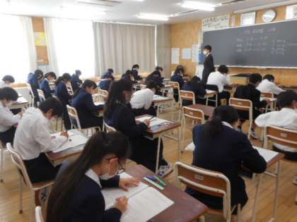 1学年の期末考査の様子です。1限目は、数学でした。真剣に問題に取り組んでいる姿は、ステキです。普段の学習や放課後SKIPの成果が発揮できるといいですね。