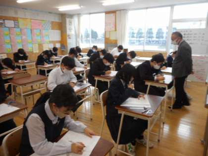 3学年の富山市学力調査2日目の様子です。2日目は、1限英語、2限数学に取り組みました。これまでの学習成果を試すとともに、得意な分野や苦手分野を明らかにして、今後の学習につなげていきましょう。