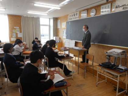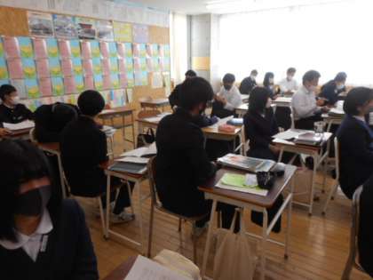 3−Bの理科の授業風景です。先日行われた富山市学力調査の振り返りをしました。いよいよ受験に向けて、本格的に取り組む時期がやってきます。苦手なところをしっかりと克服していきましょう。