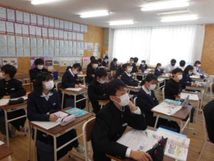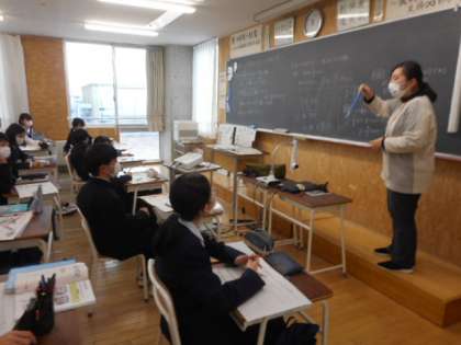 比例の学習 1−A数学 公開日 2022/12/06 更新日 2022/12/06 芝園の一日 12月6日(火) 3限 1−Aの数学の授業風景です。日常お様々な事象の中で、比例の関係があてはまる事柄を考えました。