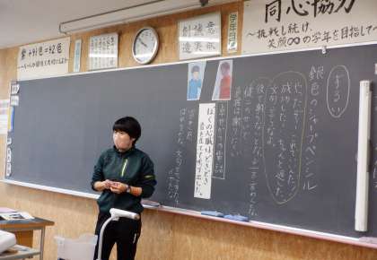 銀色のシャープペンシル 1−A道徳 公開日 2022/12/08 更新日 2022/12/08 芝園の一日 12月8日(木) 2限 1−Aの道徳の授業風景です。今日は、学年主任の先生が授業をしました。主人公の心の動きを自分のこととして考え、意見を発表しています。