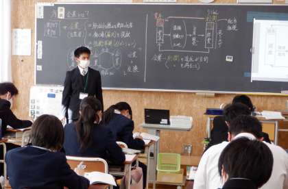 企業のはたらき・仕組み 3−A社会 公開日 2022/12/09 更新日 2022/12/09 芝園の一日 12月9日(金) 2限 3−Aの社会の授業風景です。「企業のはたらき・仕組み」について学習をしています。3年生の教室に入ると、ピリッとしたよい意味での緊張感があります。1時間、1時間の授業を大切に頑張ってほしいです。