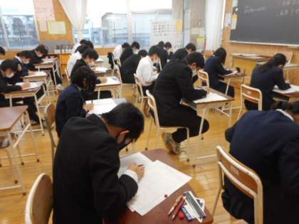 3学年の校内学力調査の2日目の様子です。今日は、英語と数学に取り組みました。真剣に問題と向き合っています。これまでの成果を発揮することができるといいですね。