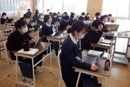 クロムブックを活用して 1−A理科 公開日 2022/12/20 更新日 2022/12/20 芝園の一日 12月20日(火) 2限 1−Aの理科の授業風景です。力のはたらきについて学習しています。「力」という言葉で、どのようなことを連想するか・・・。クロムブックを活用すると、みんなの考えが一目で分かります。