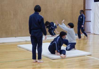 体育大好き! 3−A,D女子 公開日 2022/12/20 更新日 2022/12/20 芝園の一日 12月20日(火) 2限 3−A、D女子の体育の授業風景です。マット運動に挑戦。みんな楽しそうですね。