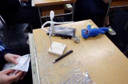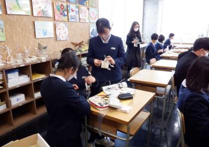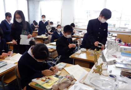動きを表現する 2−C美術 公開日 2022/12/21 更新日 2022/12/21 芝園の一日 12月21日(水) 2限 2−Cの美術の授業風景です。針金と粘土を使って「動き」を表現しています。ボールを蹴り上げた瞬間、バレエでのポーズ、疾走している動物など、いろいろな動きを表現いています。