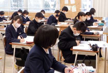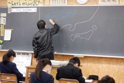2−Cの理科の授業風景です。「日本の冬の天気」について学習をしています。冬の寒さをもたらす「シベリア気団」。今週末は、強い寒気の影響で大雪となる予報もでています。まさにタイムリーな課題です。