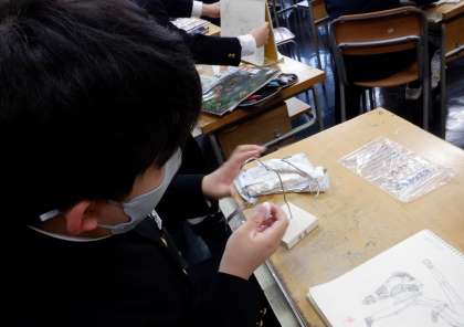 米津玄師のジャケット写真や猫がジャンプしている写真をもとに、制作している生徒もいます。一人一人の個性が光っていますね。