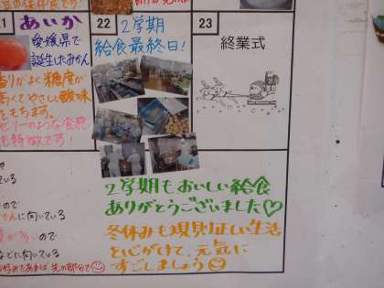 今学期、最後の給食となりました。美味しい給食を提供していただき、本当にありがとうございました。3学期もよろしくお願いします。