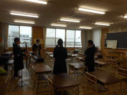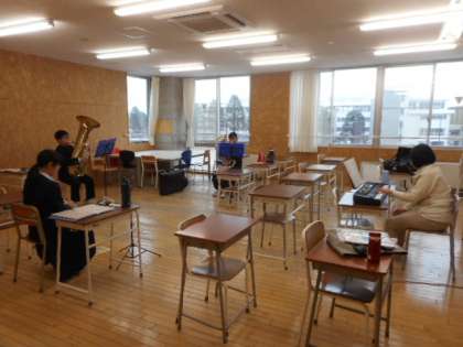 吹奏楽部の活動の様子です。アンサンブルコンテストに向けて、練習にもいっそう熱が入ります。パートごとに本番に向けて声をかけ合って取り組んでいました。