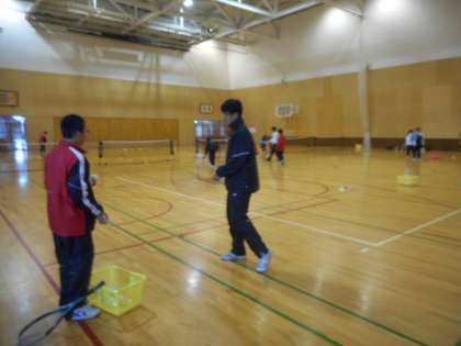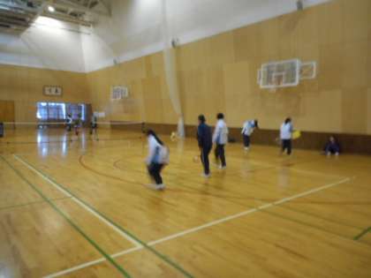 男女ソフトテニス部の活動の様子です。雪が降っているため体育館で練習しました。スマッシュの音が高らかに響き渡っていました。また、元気な挨拶もステキです。