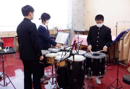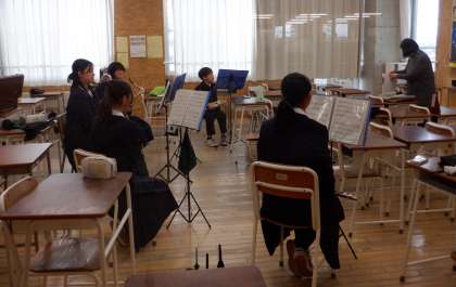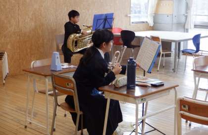 吹奏楽部の活動の様子です。アンサンブルコンテストに向けて、課題をもって練習に励んでいます。