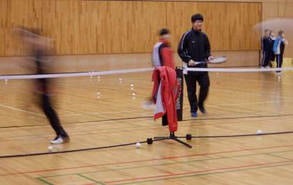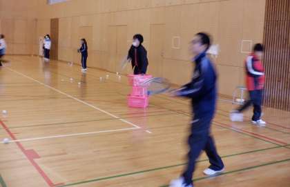 男子ソフトテニス部の活動の様子です。ボレーの練習です。先生も頑張っています!