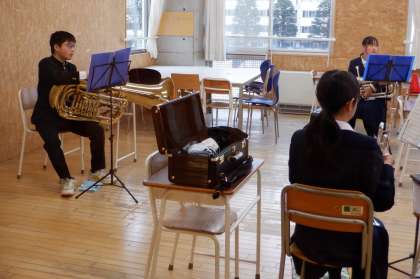 吹奏楽部の活動の様子です。アンサンブルコンテストに向けて、黙々と基礎練習に励んでいます。この積み重ねが、心に響く美しい演奏につながります。頑張ろうね!吹奏楽部!