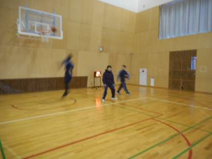 男子バスケットボール部の活動の様子です。体育館は気温が低いですが、生徒たちは活発に取り組んでいます。今日は、色々なシュートステップを練習しました。ユーロステップやスピンムーブからゴールを狙いました。