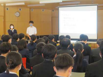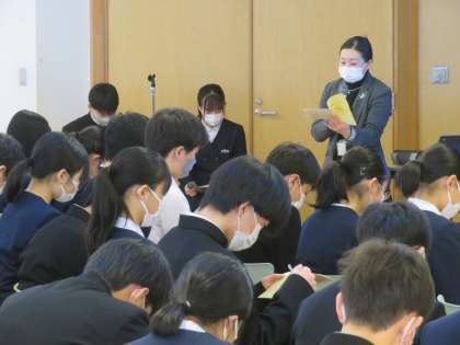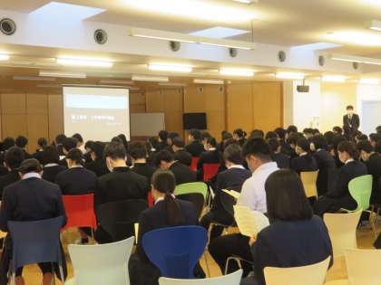 始業式の後、学年集会を行いました。学年の代表から、昨年を振り返り、受験や卒業までの具体的な目標や思いなどを伝えていました。また、受験のしおりをもとに、学習方法や日々の過ごし方について真剣に聞きました。皆で声をかけ合いながら、悔いなくがんばり抜きましょう。