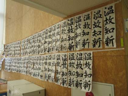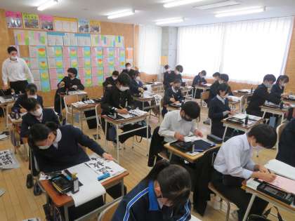 1月10日(火) 3年生の書き初め大会の様子です。真剣で気持ちも入っています。 上 3D 中・下 掲示