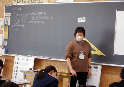 平行四辺形の証明問題 2−C数学 公開日 2023/01/17 更新日 2023/01/17 芝園の一日 1月17日(火) 2限 2−Cの数学の授業風景です。平行四辺形の証明問題を学習しています。先生の話に真剣に耳を傾けています。いいね、2年生!