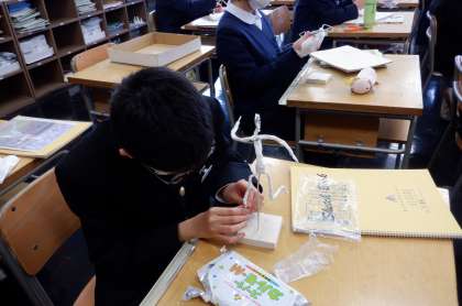 集中しています 2−D美術 公開日 2023/01/17 更新日 2023/01/17 芝園の一日 1月17日(火) 5限 2−Dの美術の授業風景です。動きのある作品作りに集中しています。どんな作品ができるか、楽しみですね。