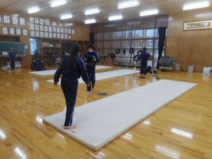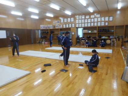 華麗な技に挑戦 3−B、3−C体育 公開日 2023/01/18 更新日 2023/01/18 芝園の一日 1月18日(月) 1限 3年B、C組の体育の授業風景です。倒立前転などの難しい技に果敢に挑戦しています。倒立では、ぴたっと静止し華麗な技を決めました。