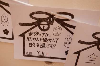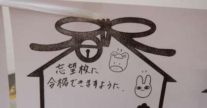 1月20日(金) 大階段には、生徒が書いた「絵馬」が掲示してあります。 一人一人の願いが叶いますように・・・。