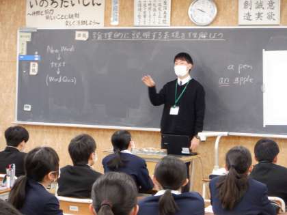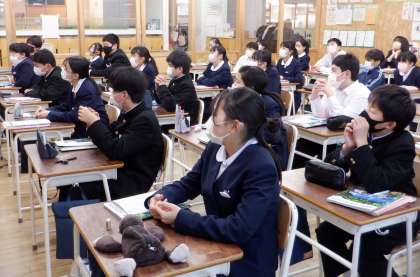 聞き取りも大事です 1−B英語 公開日 2023/01/24 更新日 2023/01/24 芝園の一日 1月24日(火) 2限 1−Bの英語の授業風景です。聞き取りの練習をしています。最初は音声だけでの聞き取り、次はイラストを見ながら聞き取っています。