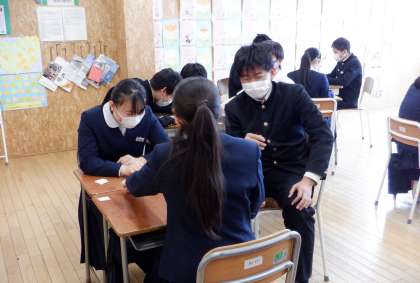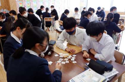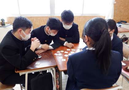3−Dの英語の授業風景です。今日はゲームを取り入れた学習をしています。楽しく学習!いいですね。