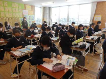 2−Dの社会科の授業風景です。東北地方の気候について学習しました。地図帳や資料集を参考にして、東北地方の気候の特徴をまとめました。