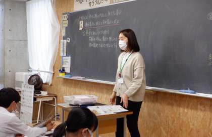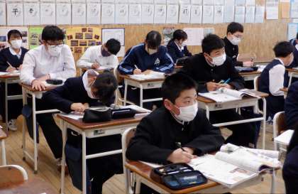 1−Cの社会の授業風景です。「鎌倉幕府が、どのように滅びたか」という課題付いて学習をしています。生徒は当時の御家人になりきって、考えを深めていました。