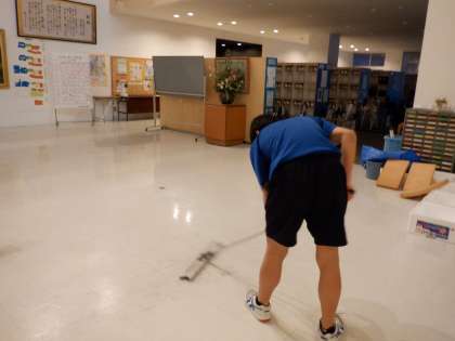 陸上競技部が活動していた近くに、この寒波で雨漏りしているところがありました。修繕も終わって片付けと掃除をしていたら、何も言わずさっと雑巾を持って来て、手伝ってくれました。優しい心遣いに、感謝です。ありがとう!