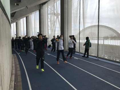 富山県総合運動公園陸上競技場で県の強化練習会が開催されました。本校からも2年男子が走高跳で、1年女子が短距離で強化指定選手に選ばれ、参加しています。競技力の向上を目指して精一杯頑張っています!