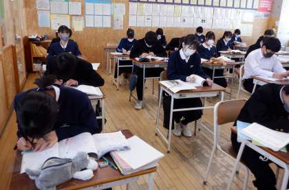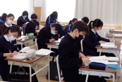 2−Aの国語の授業風景です。今日は「入試によくでる漢字」プリントで、力試しをしました。プリントが終わった生徒は、自分の課題に集中して取り組んでいます。