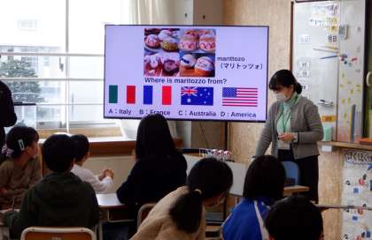 本日、本校の英語科教員が芝園小学校5年生のクラスで、英語の出前授業を行いました。14日に1回目を行い、本日が2回目の実施です。小学生の児童のみなさんは、楽しんで一生懸命授業に参加していました。