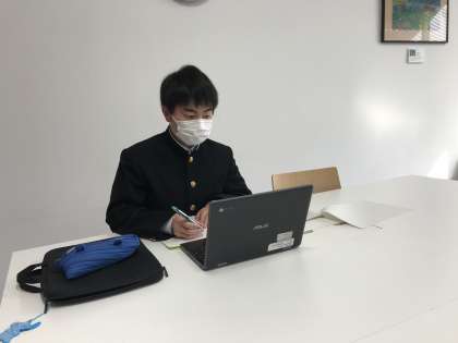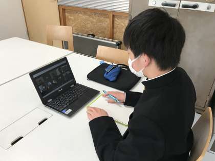 富山・金沢こどもサミットのオンラインでの意見交換会に参加しました。金沢市の生徒と「住みよい地域を築くために私たちができること」について意見交換を行いました。